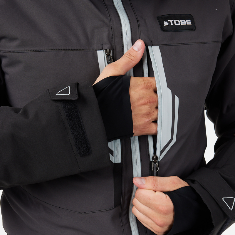 Rétt eins og vélar okkar, þurfum við góða öndun. Smástretch panelar líkja eftir loftræstingsskjám til að halda rigningu og snjó úti. Loftunarop nálægt bringu virka best með bakpokum.