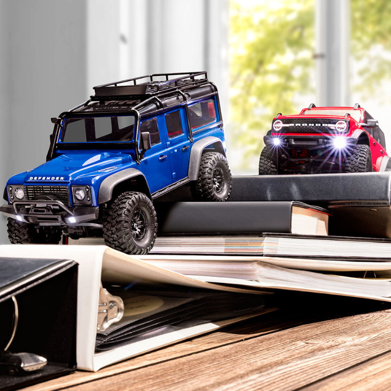 Ævintýri í minni skala tekur stórt stökk í afköstum með TRX-4M High Trail™ Edition torfærujeppunum. Þessi útgáfa er fáanleg með bæði Chevrolet® K10 og Ford® F-150® boddýum, sem bjóða upp á meira en 35% aukna hæð samanborið við hefðbundinn TRX-4M. Báðir bílarnir eru útbúnir stærri Mickey Thompson® Baja Pro™ XS dekkjum og lengri hjólgrind fyrir enn meiri getu í torfæruakstri. Hvort sem það er innandyra á þröngu svæði eða utanvegum í náttúrunni, þá skila TRX-4M High Trail Edition pallbílar gæðum og afköstum sem þú getur treyst á frá Traxxas.